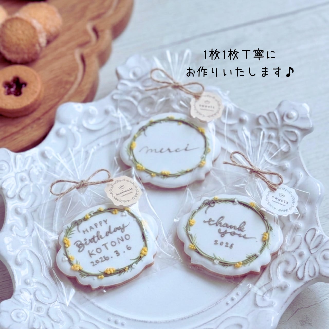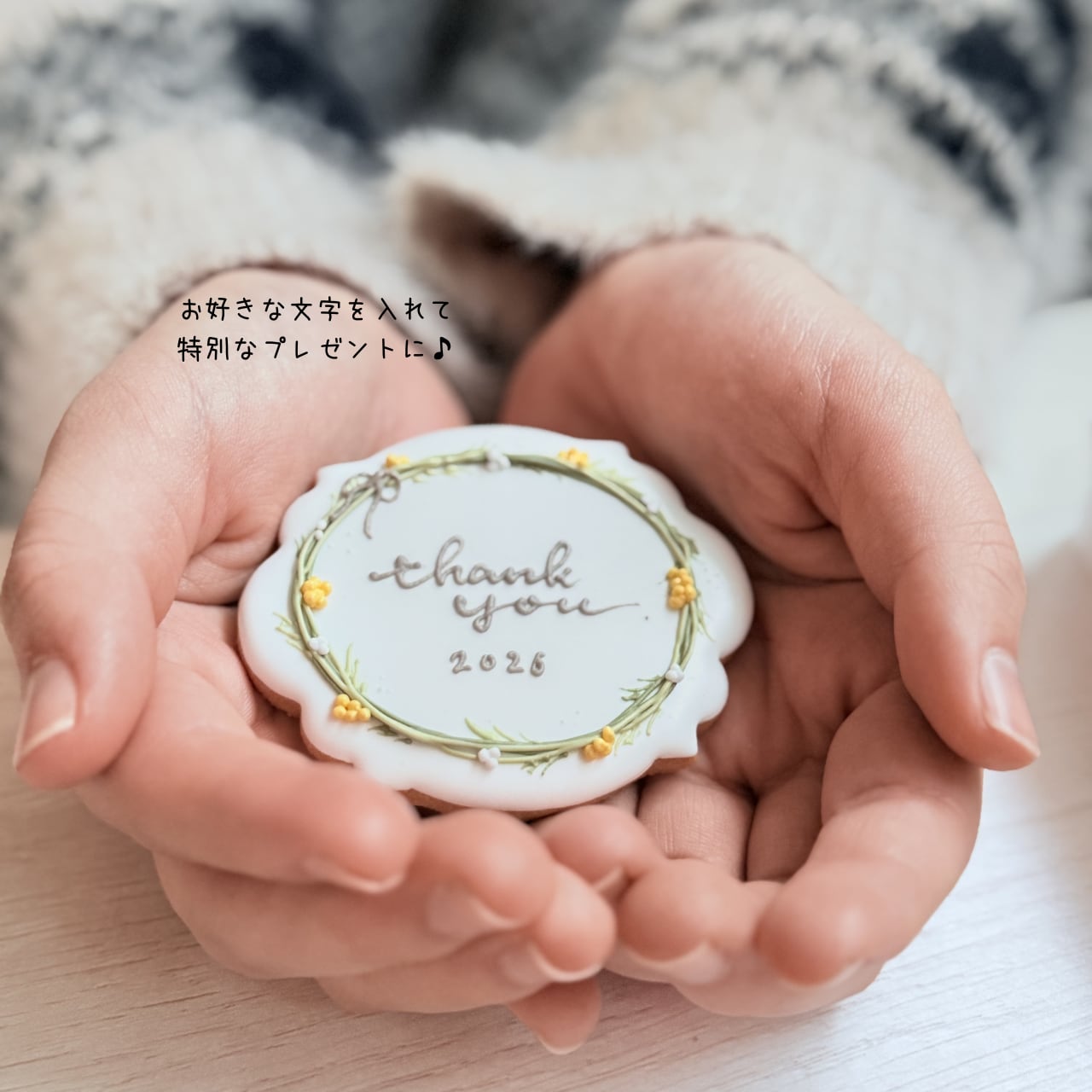 手のひらサイズの大きめのクッキーですので長めの文章も入れられます♪