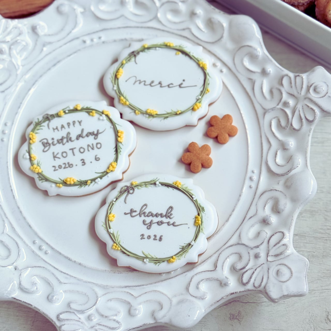 春らしいミモザモチーフのアイシングクッキーです。
